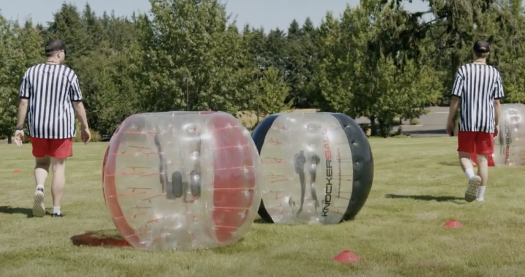 The idea of getting into the bubble ball business originally came from Murrell’s high school football coach, George Crace. George and his wife, Donna, ran a nonprofit focused on helping kids bridge the gap between high school and college—and part of that included hosting bubble ball events. Murrell worked at those events for about two years. Toward the end of that time, the Crace’s offered him the chance to buy the equipment and take things over. Murrell called up Brucker, and the rest is history!